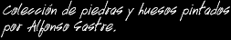 Piedras como bases o soportes de pinturas. Esculturas que vienen hechas de la naturaleza (piedras) y que sólo pedían -me pedían, interpelándome- el color que yo podía procurarles para que se convirtieran en esculturas polícromas; obras, por otro lado, fugaces; pan de poesía para hoy, hambre de pura piedra para mañana. También hay estos huesos, que se llamarán si se quiere osteogramas, involuntarios óleos en función del aceite que envían a la superficie desde su recóndito interior. Grafolitos y osteogramas. Piedras y huesos. Pero también papeles hay en este vertedero del artista plástico frustrado que yo soy, y que, si se ponen juntos -papeles, huesos y piedras- convienen en ser una colección que sólo muy generosamente podría entenderse como una obra gráfica, plástica o pictórica. ¿Nos